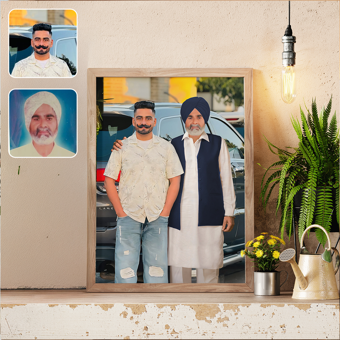Each portrait is created with care — we match sizes, angles, lighting, and background to make it look real and natural. It’s not just a copy-paste; it’s carefully crafted by experts.