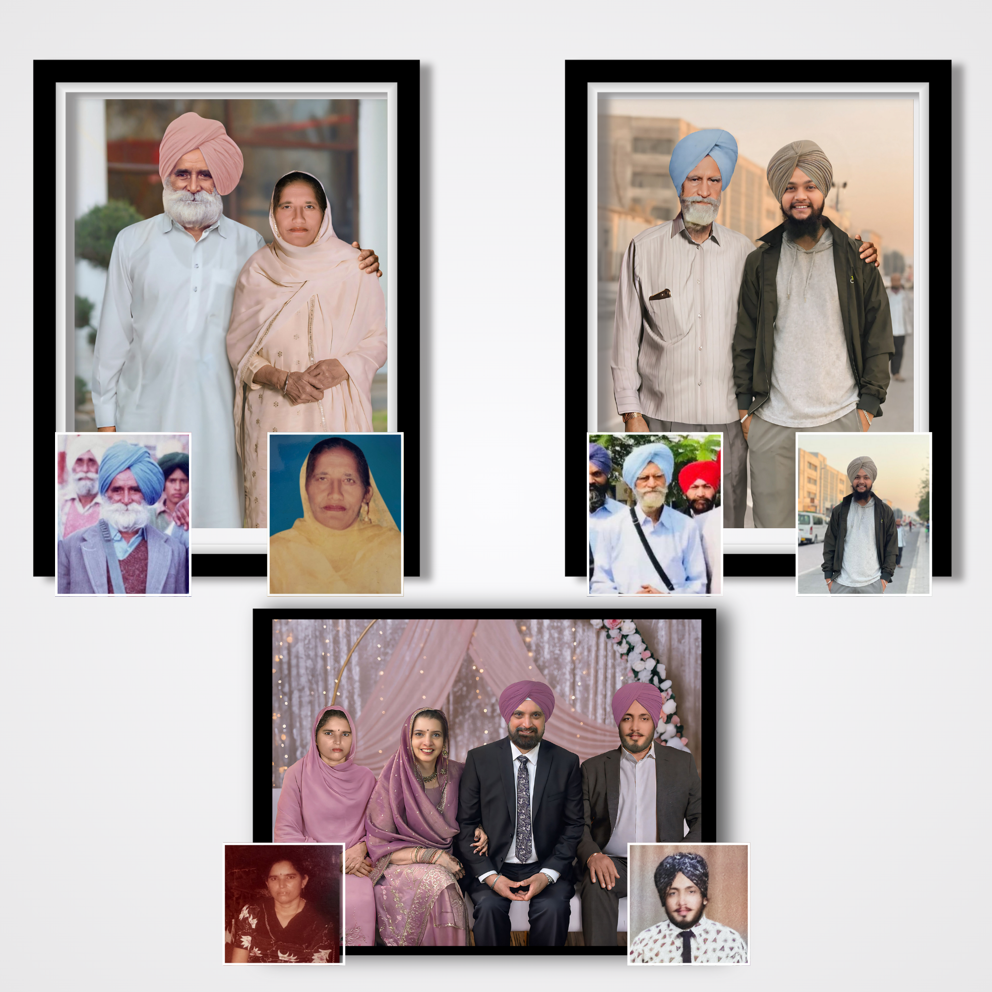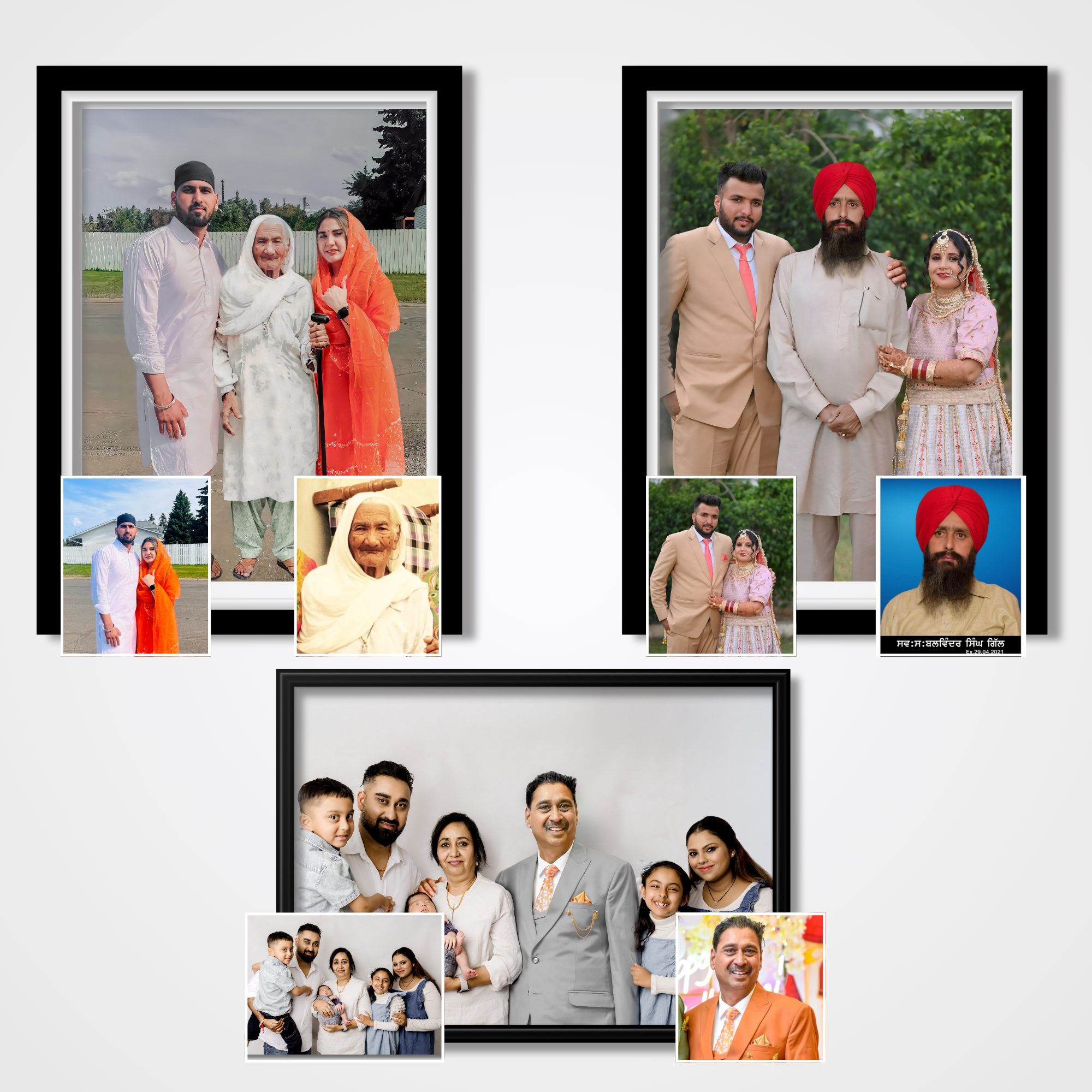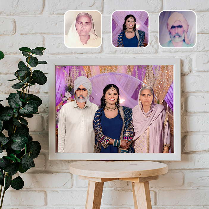 You can send us old, damaged, or small photos. Just tell us how they looked or where you want them placed, and we’ll take care of it.